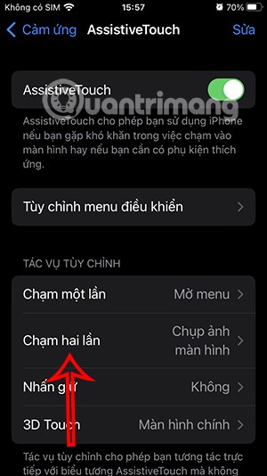 ตอนนี้คุณต้องเปิดใช้งาน AssistiveTouchบน iPhone ของคุณ แตะต่อไปบนการดำเนินการแตะสองครั้งเพื่อแก้ไขการดำเนินการนั้น