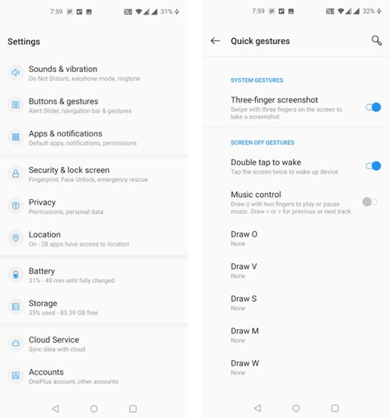 โทรศัพท์ OnePlus สามารถดำเนินการต่างๆ โดยใช้ท่าทางที่แตกต่างกัน นอกจากนี้ยังมีท่าทางในการจับภาพหน้าจออีกด้วย ซึ่งเป็นสิ่งที่คุณสามารถใช้เพื่อจับภาพหน้าจอได้อย่างรวดเร็วโดยไม่ต้องกดปุ่มใดๆ