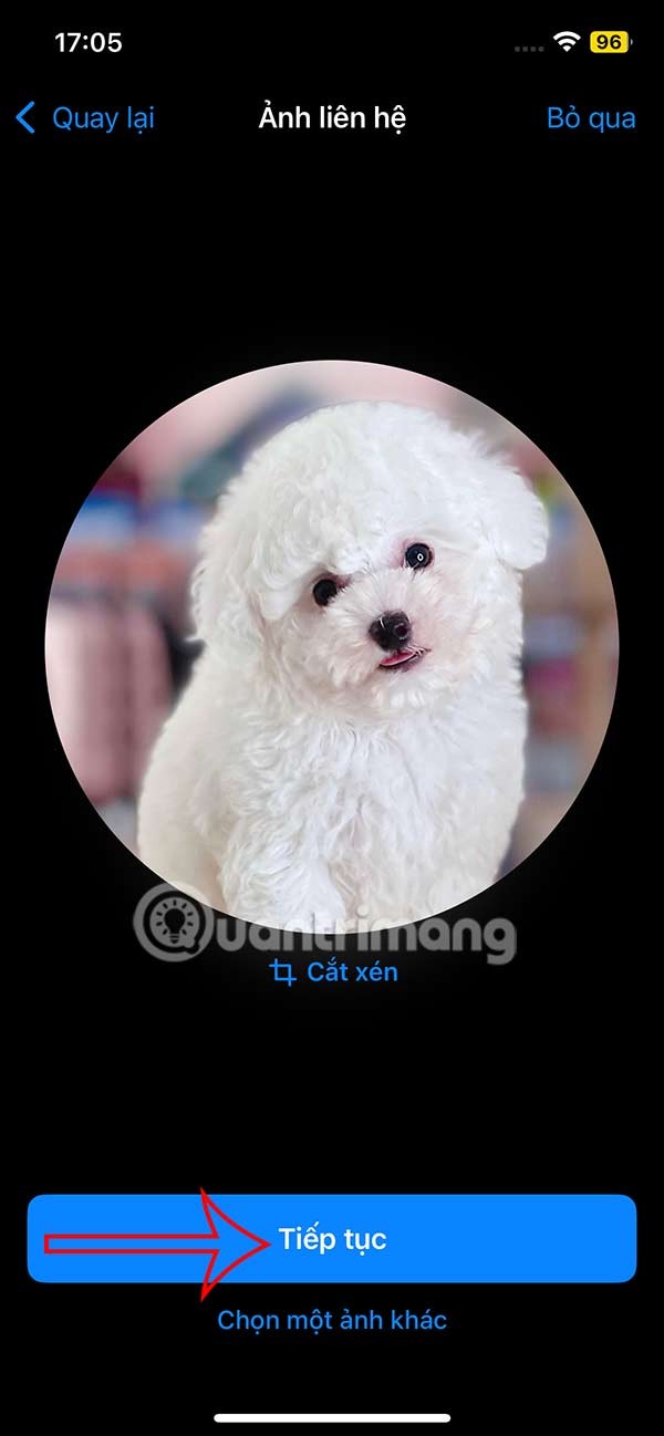 รูปภาพการติดต่อแบบเต็มหน้าจอบน iPhone จะแสดงดังที่แสดง คลิกดำเนินการต่อ คลิกดำเนินการต่อเพื่อบันทึกภาพติดต่อสำหรับหมายเลขโทรศัพท์