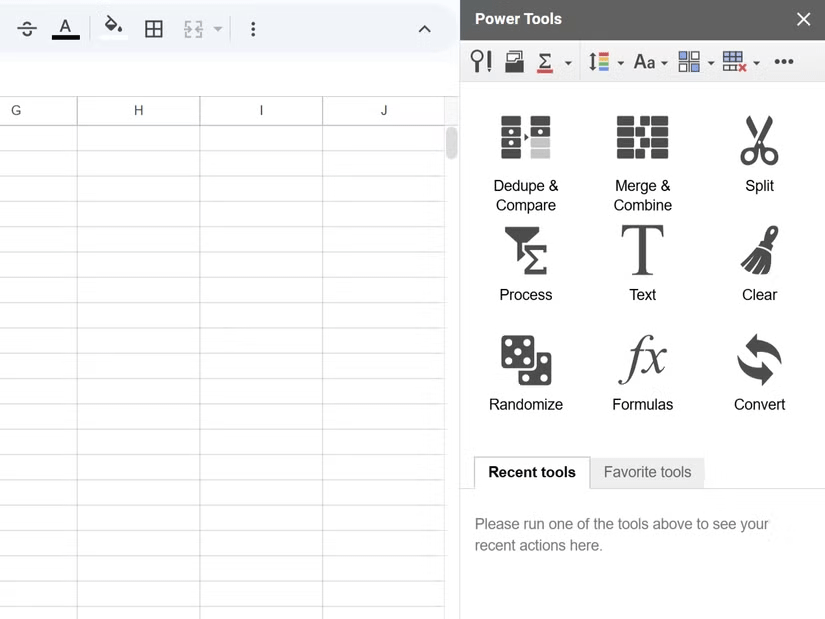 แถบด้านข้างเครื่องมือไฟฟ้าใน Google Sheets