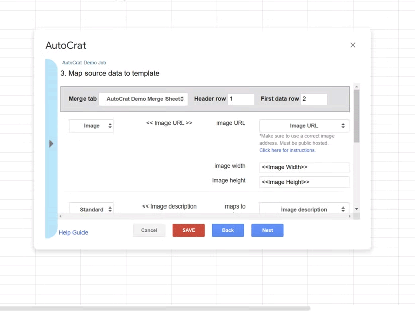 AutoCrat ให้ข้อมูลในเทมเพลต